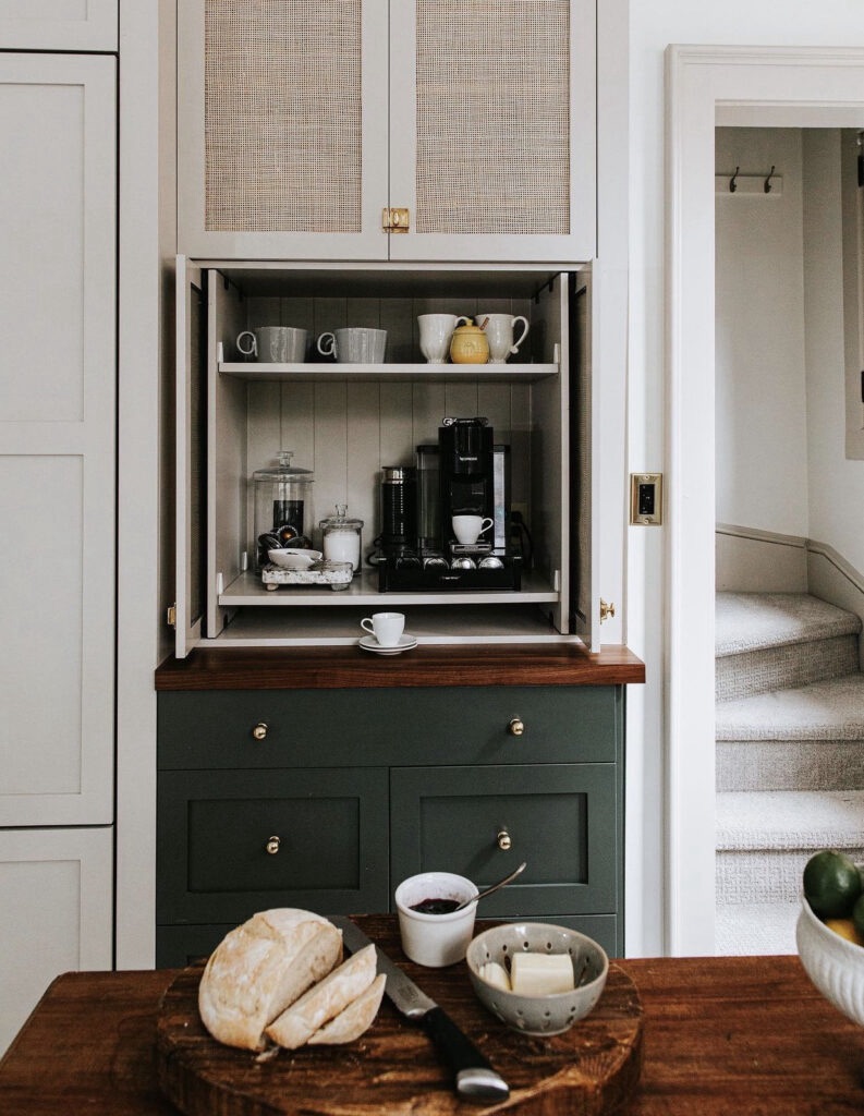 Whether it’s herbal teas, hot coffees or Friday night cocktail, drinks cabinets are back with a bang. But, again, built in to the kitchen cabinets for that seamless, elegant style. I adore the above example of the doors that fold back into the unit. The two colours, and chose of cabinet doors gives this particular example a very interesting look. As big coffee drinkers this is another must for our kitchen!